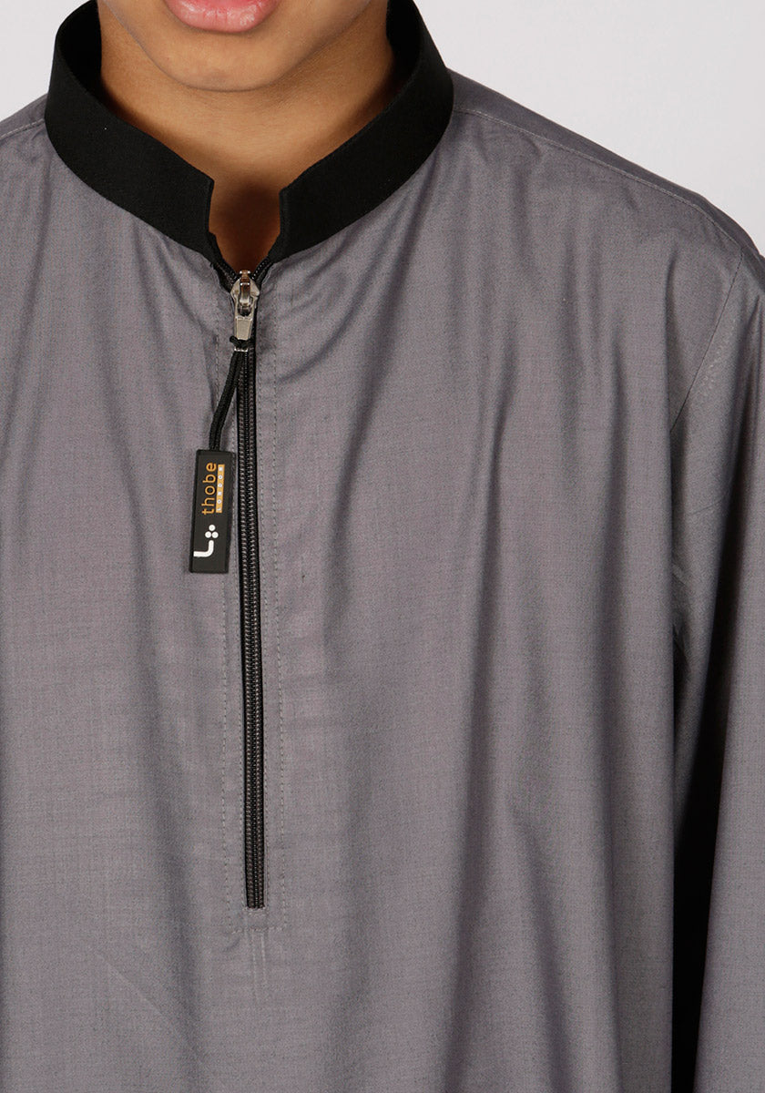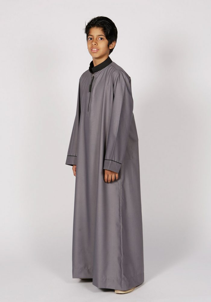 Contrast Collar Kids Thobe (Grey)