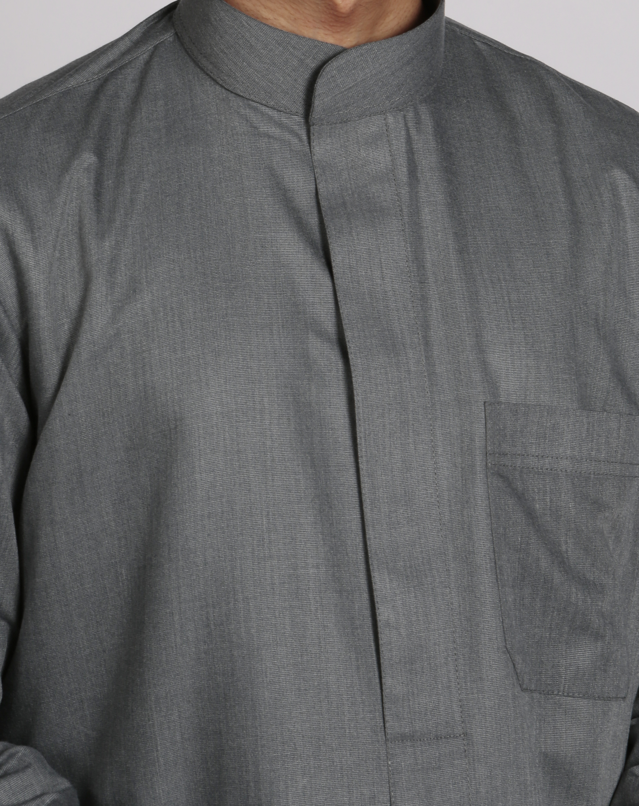 This smart yet casual thobe is just what you need for the office, featuring a curved mandarin collar. The fabric consists of a mid weight cotton and viscose blend fabric which is comfortable for everyday wear.